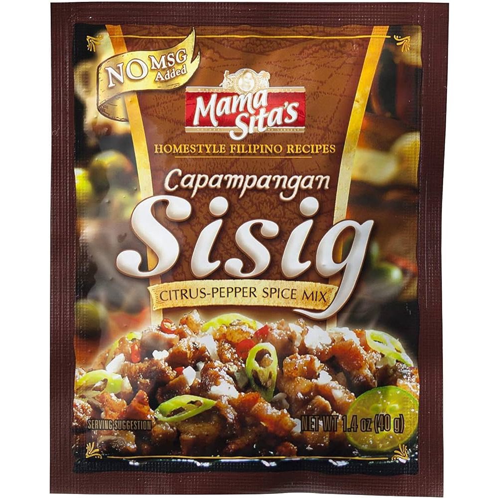 Wir präsentieren Ihnen stolz unser Produkt „MAMA SITA´S Sisig“ in der 40g Packung. Diese exquisit gewürzte Spezialität lässt die Herzen von Sisig-Liebhabern höherschlagen.