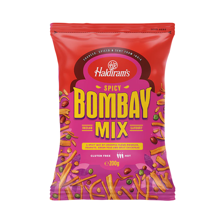 HALDIRAMS Bombay Mix 200g ist eine köstliche Mischung aus herzhaften Snacks, die Ihren Gaumen mit exotischen Aromen verwöhnt. Diese traditionelle indische Mischung ist perfekt für alle, die auf der Suche nach einem knusprigen und pikanten Snack sind.