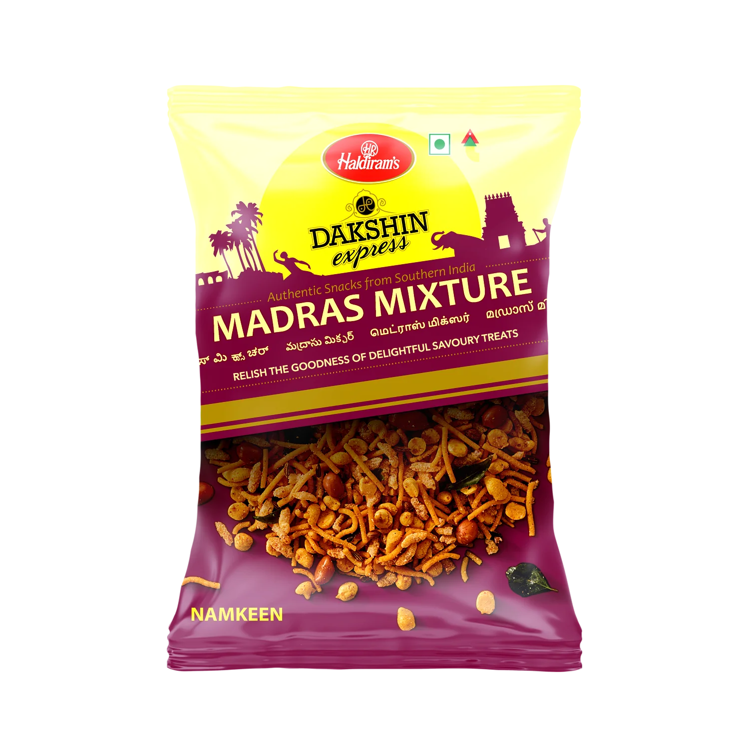 Unser Produkt HALDIRAM´S Madras Mixture ist eine köstliche Mischung aus knusprigen Kichererbsen, Nüssen und Gewürzen. Diese traditionelle indische Snackmischung ist perfekt für jeden Anlass, sei es als Snack für zwischendurch oder als Begleitung zu einem Getränk.