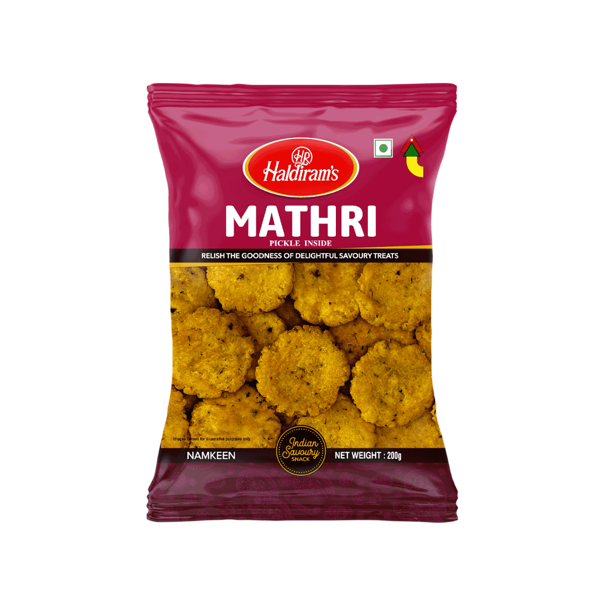 Hergestellt aus feinstem Mehl und sorgfältig ausgewählten Gewürzen, ist jede Mathri von Haldirams ein Meisterwerk der indischen Küche. Jeder Bissen ist ein Fest für die Sinne, da sich die Kombination aus verschiedenen Gewürzen entfaltet und einen unvergesslichen Geschmack hinterlässt.